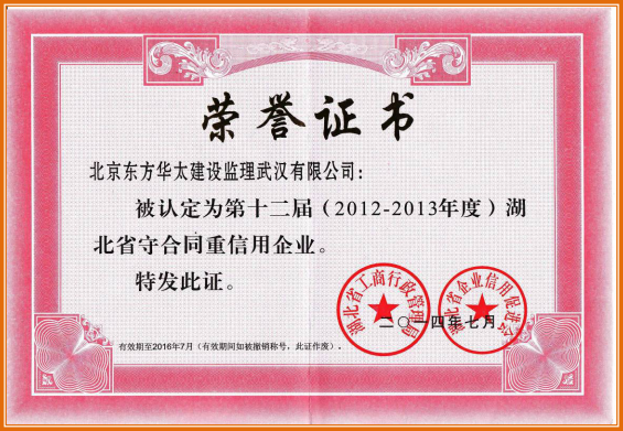 第十二屆(2012-2013年度)湖北省守合同重信用企業