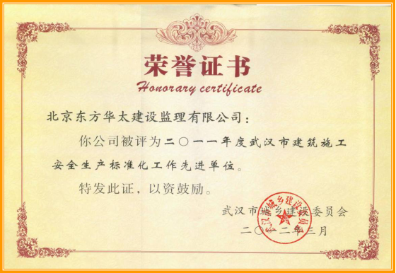 2011年度武漢市建筑施工安全生產標準化 工作先進單位