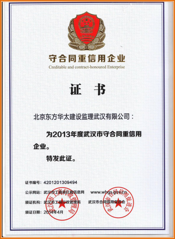 2013年度武漢市守合同重信用企業