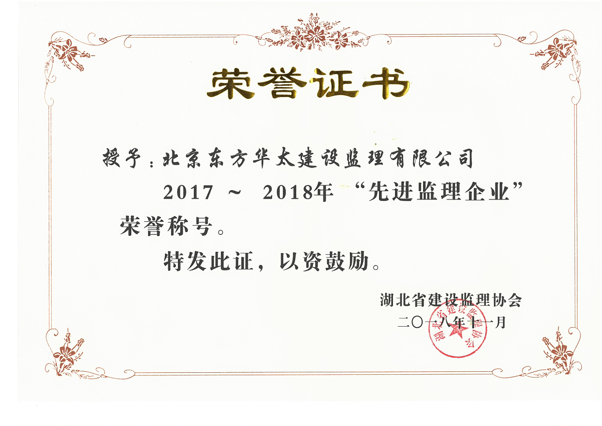 湖北省2017~2018先進監理企業