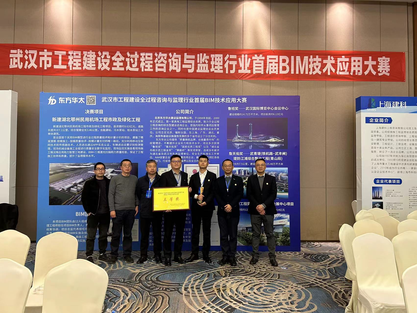 2023年12月15日由武漢市工程建設全過程咨詢與監理協會、武漢市總工會建筑行業工會聯合會共同舉辦的“首屆BIM技術應用大賽”圓滿落下帷幕。經過激烈角逐,我公司“新建湖北鄂州民用機場工程市政及綠化工程”榮獲大賽三等獎,“國家糧食現代物流(武漢)基地暨國家稻米交易中心冷凍產品加工一期項目”榮獲大賽優勝獎。